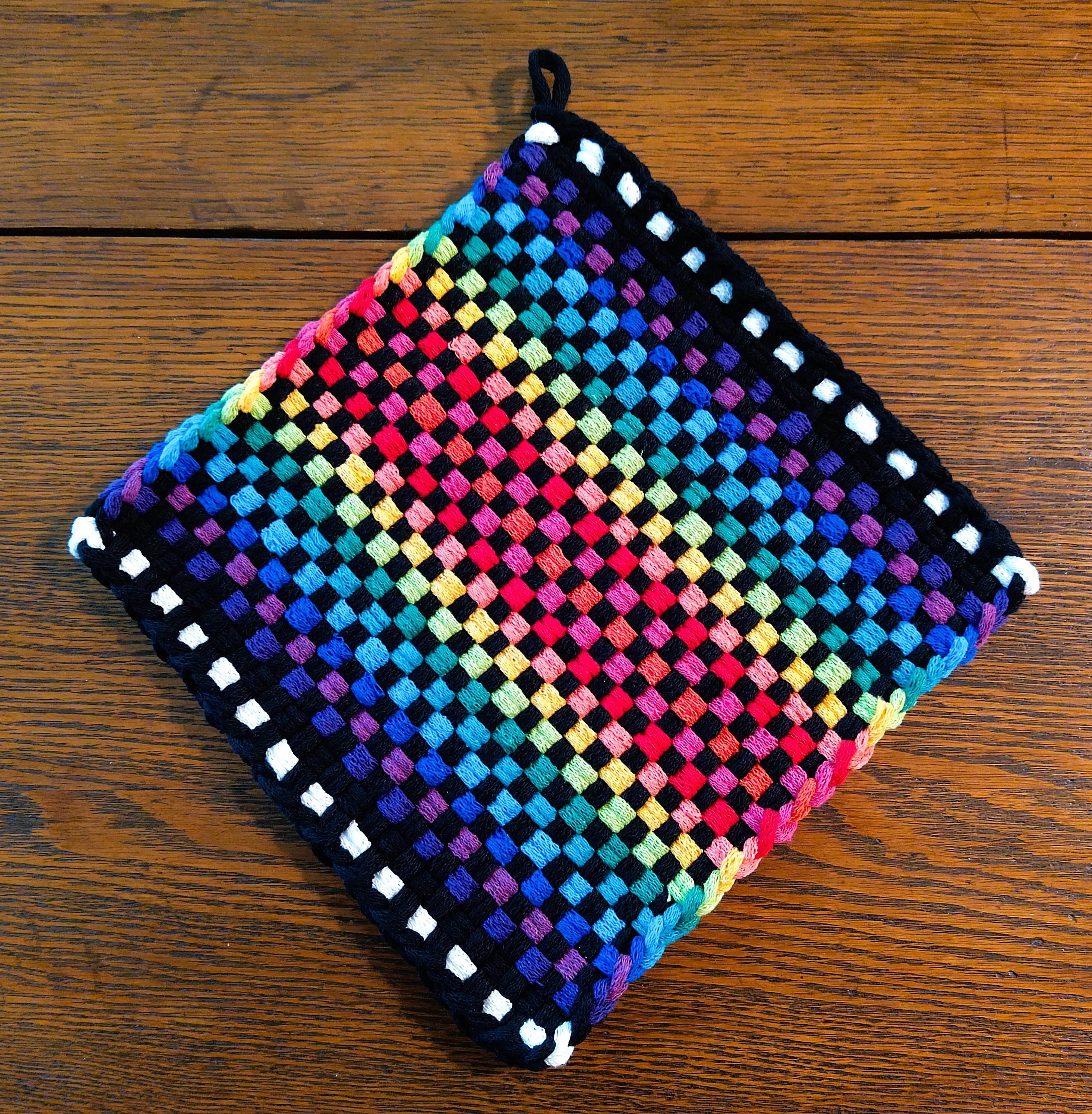 2. Potholder making FTW! That bright potholder is my favorite also! (and after Hillary's loss which the polls all said she would win... I stopped watching polls completely! Polls do not vote, people do. Period. Voter turn out is the entire answer!)